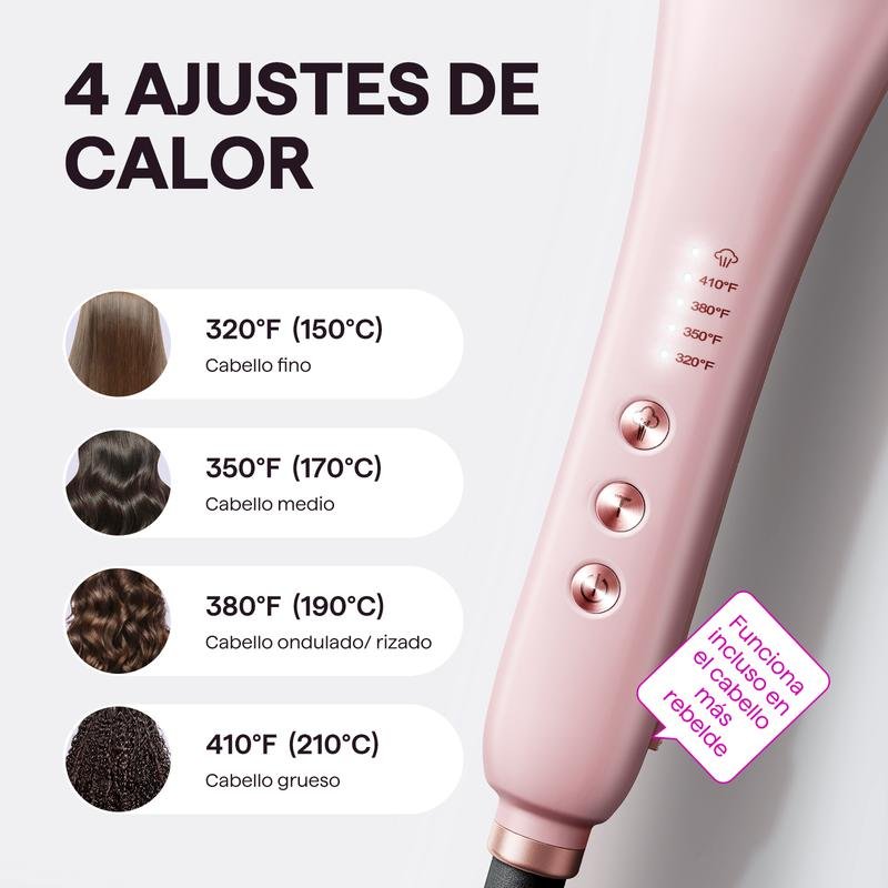 🌡️ 4 niveles de temperatura (320°F a 410°F): Ajusta el calor según tu tipo de cabello — fino, medio, ondulado o grueso. Control preciso para resultados profesionales sin dañar tu cabello.